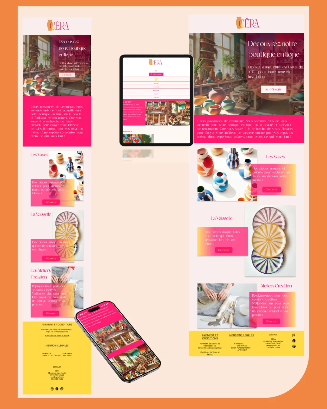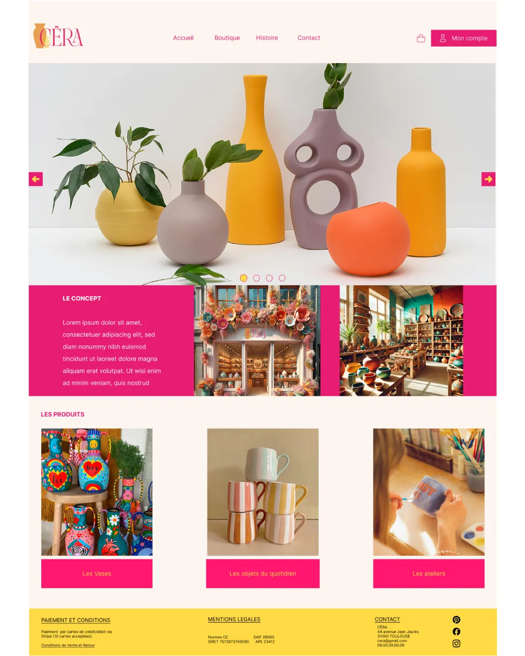 Ce projet fictif a été conçu autour de Cëra, une boutique de céramique artisanale imaginée pour ce travail créatif.